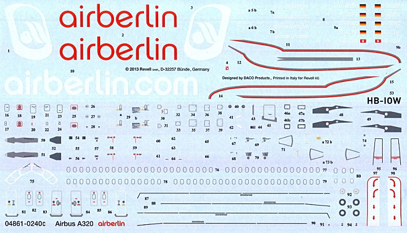Dieses Mal hat sich Revell entschieden in Kooperation mit DACO/Skyliners die Decals für eine Variante der Air Berlin dem Bausatz beizufügen.