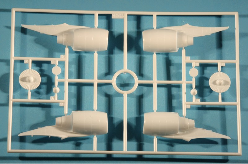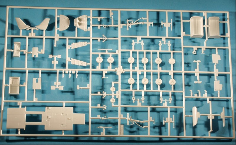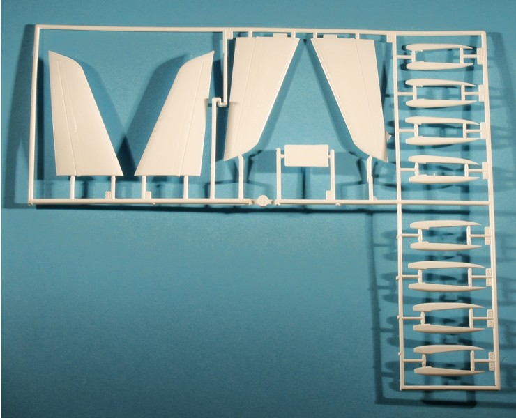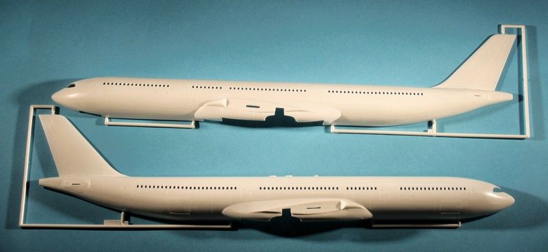 Im unpraktischen, aber sicherlich günstigeren Schüttkarton befinden sich 105 Teile aus weißem Kunststoff an sieben Spritzrahmen. Einige Teile wie das Mittelfahrwerk des A340 werden nicht benötigt. Trotz des hohen Alters fällt sofort die hohe Qualität der Abspritzung auf, die Form zeigt keinerlei Alterungserscheinungen. Daher gilt grundsätzlich das gleiche wie auch schon in der Besprechung zum A340 von Revell gesagt.