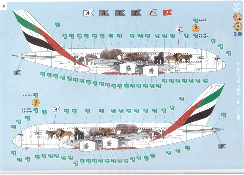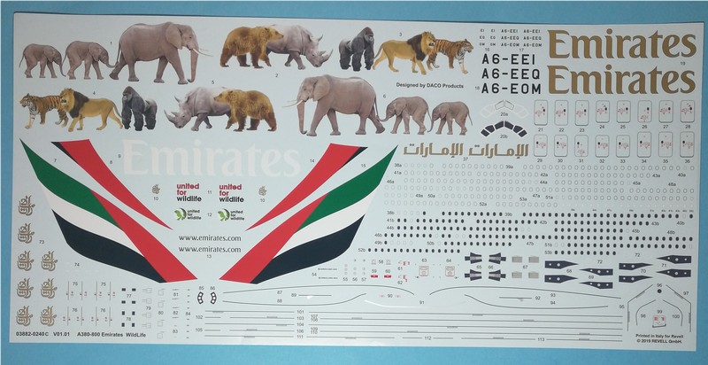 Vorbild: Ich denke zum Airbus A380 muss ich nicht mehr viel schreiben, da das immer noch größte Passagierflugzeug der Welt einen hohen Bekanntheitsgrad hat. Emirates ist mit deutlichem Abstand der größte Betreiber. Aktuell(Stand Januar 2020) hat die Airline aus Dubai 115 Maschinen im Einsatz mit weiteren acht Stück in Bestellung. Dabei betreibt sie die Riesenmaschinen in sechs verschiedenen Sitzkonfigurationen von 489 bis zu 615 Sitzen. Die große Rumpffläche der A380 bietet sich natürlich als große "Werbefläche" für Sonderbemalungen an. Neben den Sponsoring von Fußballvereinen sind auch besondere Aktion Teil der Bemalungen, so auch die Aktion "United for Wildlife". Emirates hat sich damit zum Ziel gesetzt, auf den illegalen Handel mit Wildtieren und die ernsthafte Bedrohung der weltweit meist gefährdeten Tiere aufmerksam zu machen.