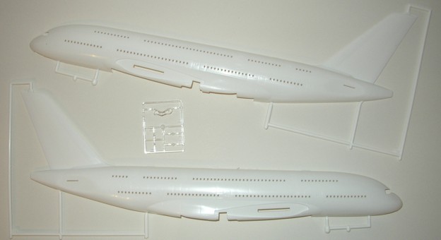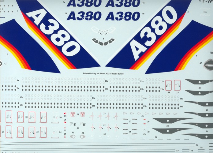 Für die Bezeichnung A 380-800 habe ich keinen Beleg gefunden. Für mich kommen auch Marketinggründe von Revell in Frage. Es ist im Original noch die Version A 380-F geplant und die hat nur einen anderen Rumpf. Das wären im Bausatz zwei Spritzlinge. Warten wir es ab.