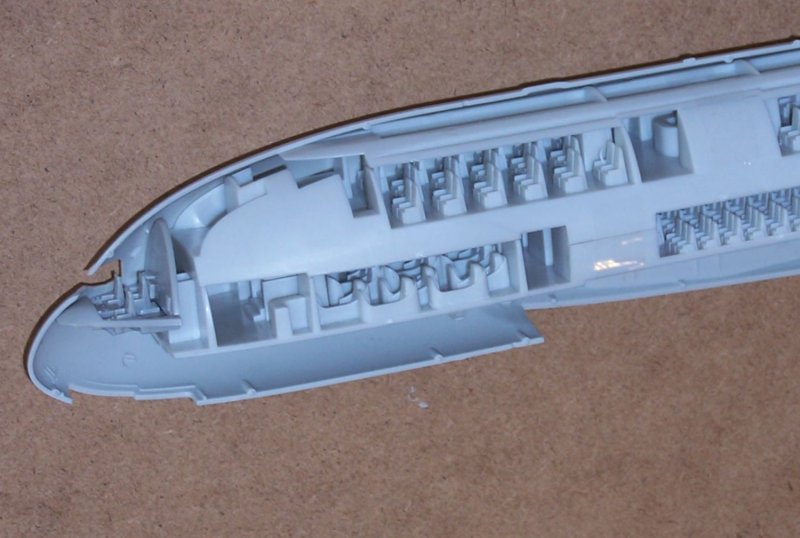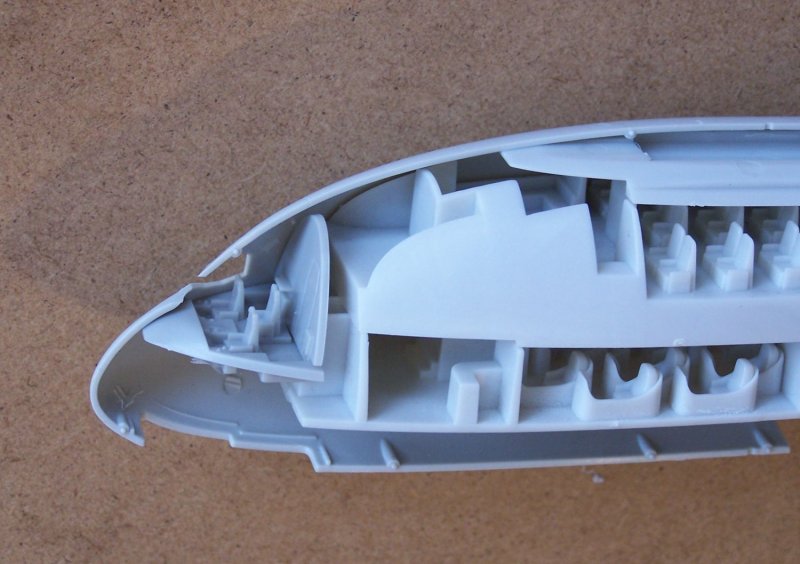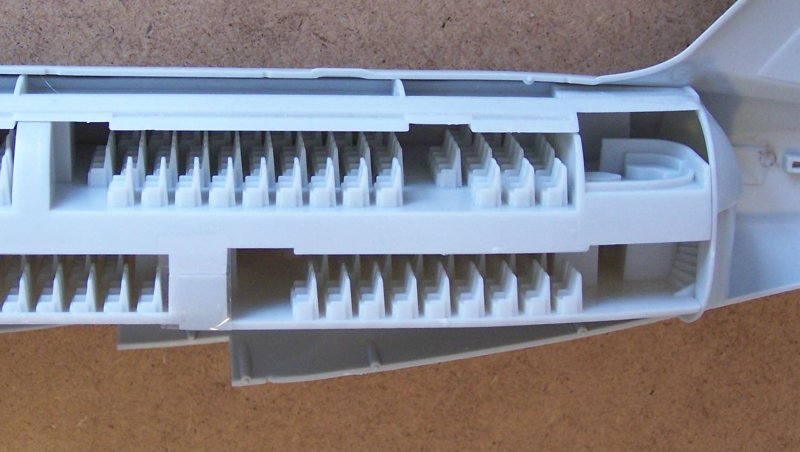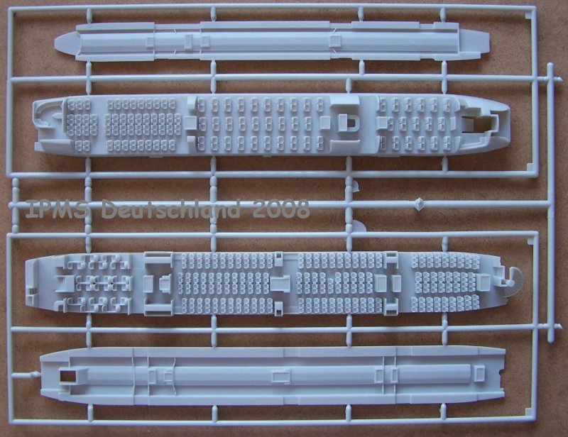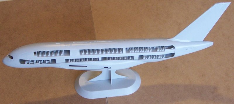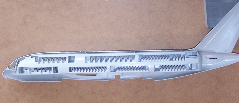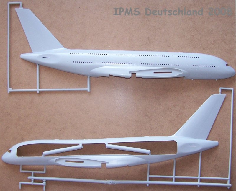 Optisch sieht es derzeit so aus, als ob die offene Rumpfhälfte und die Inneneinrichtungsbauteile sowie der Ständer den "alten" A380-Bausatz ergänzen.
