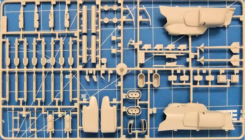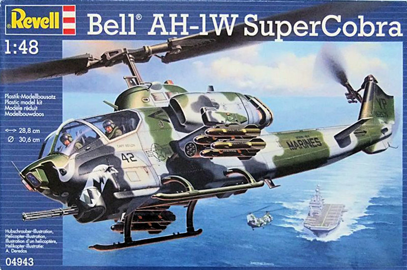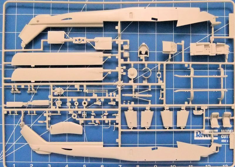 Bausatz: Von Italeri 1994 auf den Markt gebracht, legt ihn Revell aus Bünde/Westfalen nun wieder auf. Im Maßstab 1:48 ist dieses Modell des "Heli" erst einmal einzigartig. Allerdings sollte man vom Formenbau der damaligen Zeit keine Wunder erwarten, so sind die in diesem unpraktischen Faltkarton enthaltenen 128 Bauteile noch mit erhabenen Gravuren versehen.