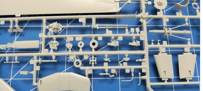 Was die Details anbelangt, hat das Modell alles an Ausrüstung was es benötigt um auf die Kufen gestellt zu werden Nur wirken diese nach heutigen Maßstäben etwas einfach. Das beginnt mit dem Cockpit. Es ist alles enthalten. Aber wenn ein jüngerer Bastler sagen würde: "Die Sitze sehen ja aus wie der Opas Ohrensessel" so hätte er nicht ganz unrecht. Sei es darum. Auf alle Fälle aber sollten die aufgeprägten Stricke, welche das Gurtzeug darstellen, entfernt und durch solches aus der Zurüstproduktion oder selbstgemachte ersetzt werden. So etwas macht schon eine Menge an Verfeinerung aus. Für die Armaturen hätten wir uns von Revell Decals gewünscht. Heutzutage eigentlich Standard.