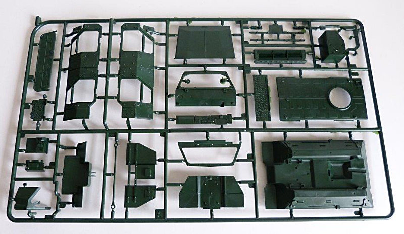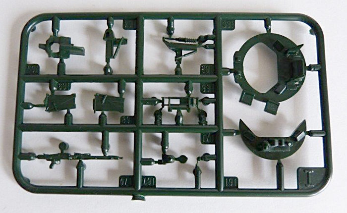 Weiterhin liegt dem Bausatz ein kompletter Innenraum bei. Die Recardo Sitze sollten noch mit Sicherheitsgurten ausgerüstet werden. Hier sollte man Fotos zu Rate ziehen. Auch der Innenraum kann noch weiter verbessert werden, ist aber ansich gut gelungen und ist nach Einbau, der Türen und des Daches nur eingeschränkt einsehbar. Dem Bausatz ist die Überkopf-Waffenstation vom Typ 1530 beigegeben worden. Diese ist gut wiedergeben worden. Auch das MG 3 mit separat anzubringendem Spannhebel macht einen guten Eindruck. Nicht alle an den Gussästen angegossenen Bauteile werden für dieses Modell gebraucht. Dies macht Hoffnung das bei Revell weitere Varianten des Dingos erscheinen werden. Die von Revell wie üblich sehr gut gestaltete Bauanleitung umfasst 20 Seiten. 224 Bauteile, gilt es auf 63 Bauabschnitten zu verbauen.