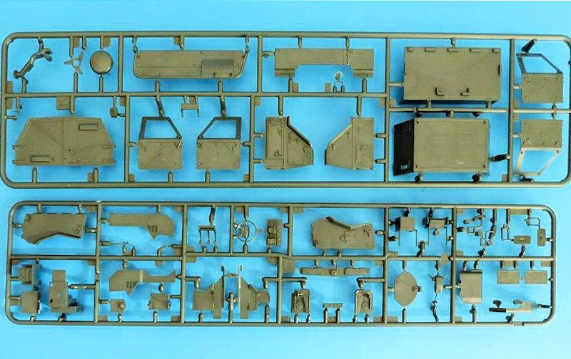 Die Waffenstation vom Typ FLW 200 liegt dem Bausatz bei. Hier kann zwischen dem Maschinengewehr cal.50 und der 40mm Granatmaschinenwaffe gewählt werden. Beide Varianten sind gut wiedergeben. Die von Revell wie üblich sehr gut gestaltete Bauanleitung umfasst 20 Seiten. 238 Bauteile, gilt es in 66 Bauabschnitten zu verbauen. Da ich den Dingo der Version 2 A2.2 schon gebaut habe, weiß ich, dass Detaillierung und Passgenauigkeit sehr gut sind und der Bau des Modells viel Freude bereitet.