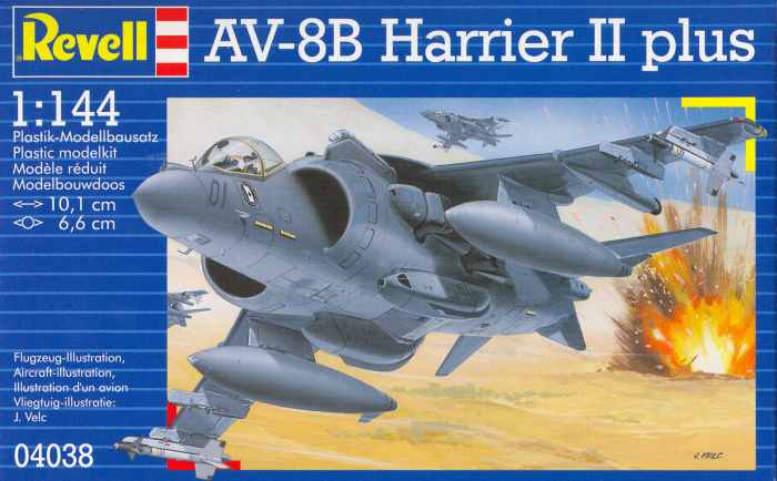 Vorbild: : Im Jahre 1978 flog der erste Prototyp der überarbeiteten Harrier Generation zum ersten Mal. Es handelt sich bei der AV-8B um einen bei McDonnell Douglas völlig überarbeiten Entwurf der britischen Harrier. Insgesamt wurden 362 Maschinen für die US Marines und die Royal Navy hergestellt. Bis zum jetzigen Zeitpunkt ist die AV-8B der leistungsfähigsten Senkrechtstarter der westlichen Welt. Die US Marines setzten die AV-8B in den letzten Jahren intensiv am Golf, in Afghanistan und im Balkan ein. Bei den Maschinen der "Plus"-Version handelt es sich um Upgrades vorhandener Modelle. Bei diesen wurde vor allem die elektronische Ausstattung erneuert.