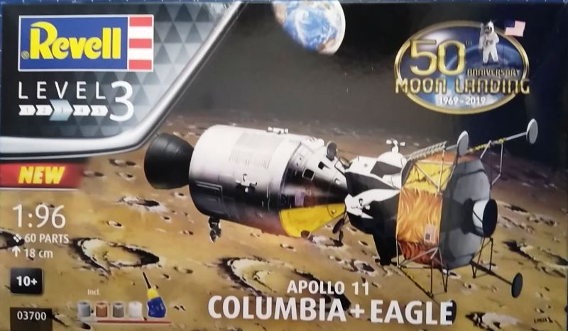 Vorbild: Zum 50jährigen Jubiläum der ersten Mondlandung hat Revell seinen ebenso alten Bausatz mit der Landefähre Eagle, der Kommandokapsel Columbia und dem Servicemodul einschließlich Ständer und einem Stück Mondoberfläche für Bastler ab 10 Jahren neu aufgelegt.