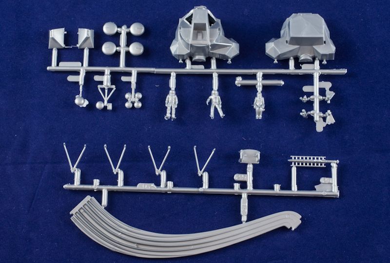 Auch das Command and Service Module (die eigentliche Raumkapsel) sowie die Mondlandefähre sind separat vorhanden und lassen sich auf die Rakete aufstecken. Bei Mondlandefähre muss man allerdings wählen, ob man sie mit aus- oder eingefahrenen Landebeinen bauen möchte. Nur im letzteren Fall passt sie in die Rakete. Durch ein Klarsichtsegment kann man sie auch im verstauten Zustand sehen.