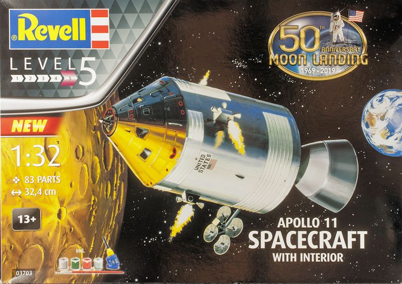 Bausatz: Den 50. Jahrestag der ersten bemannten Mondlandung nimmt sich Revell zum Anlass, eine Reihe von klassischen Raumfahrtbausätzen der 60er und 70er Jahre neu aufzulegen. Das CSM in 1:32 ist ein Kit von 1970, den wohl inzwischen ganze Generationen von Bastlern in eine Replik dieser Ikone der Raumfahrt verwandelt haben.