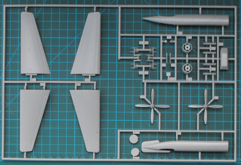 Bausatz: Vor mehr als zehn Jahren erschien dieser Bausatz bei Revell. Die Form wurde in Korea gefertigt und das Ergebnis kann sich sehen lassen. In der typischen Revell-Schüttelbox befinden sich gut in Folie verschweißt zwei Spritzlinge und die Klarsichteile. Die übersichtliche Bauanleitung enthält einen längeren Text über das Vorbild. Leider ist er schon fast winzig geschrieben. Da nach meinem Empfinden die Datenlage des Vorbildes etwas dürftig ist, muss bei diesem Bausatz einiges spekulativ bleiben. Es gibt ein ordentliches Cockpit, was sicherlich durch Freaks noch verfeinert werden kann. Ich denke an die Ergänzung von weitergehenden Details. Die Sitzgurte sind auf die Sitze aufmodelliert. Das Instrumentenbrett ist leider glatt und bekommt ein Decal.