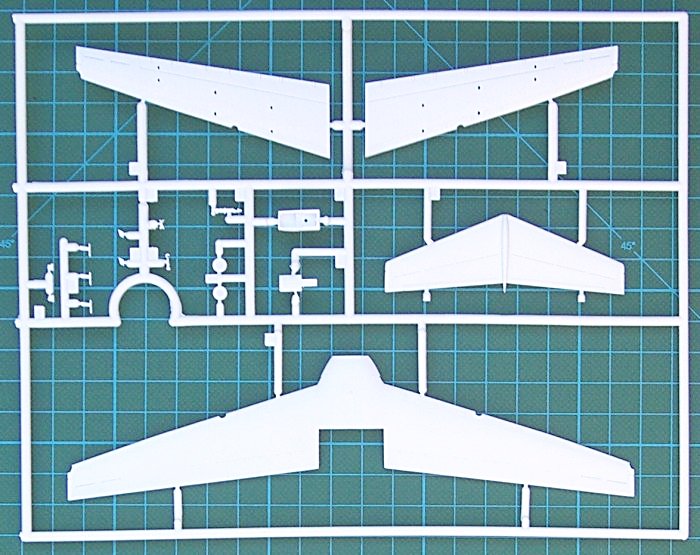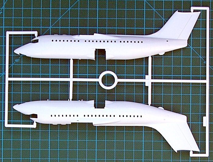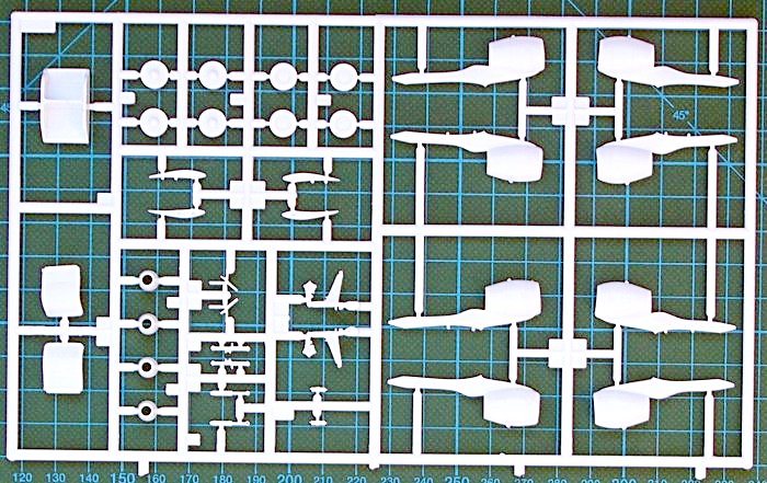 Bausatz: Auf vier Spritzlingen verteilen sich insgesamt 70 Bauteile. Dieser Bausatz ist eine Wiederauflage des 1997 erschienen Kitīs, man findet auch auf den Spritzlingen die alte Katalog Nr. 04028. Jedoch zeigen die Formen keine Alterungsprozesse, der Spritzguss ist perfekt. Die Gravuren sind sehr sauber und fein. Allenfalls die Laderaumtüren erscheinen mir zu klein. Dafür wurden die unterschiedlich großen Türen zwischen der Passagier- und Serviceseite beachtet. Die vier Triebwerke sind sehr gut ausgeführt, das Fahrwerk ist filigran und sehr detailiert mit z.B. den Bremszylindern. Auch der große Hauptfahrwerksschacht bietet eine ausreichende Detailvielfalt. Die Fenster am Rumpf sind Revelltypisch durchbrochen dargestellt, das Cockpitfenster liegt als Klarsichtteil bei. Ansonsten beinhaltet der Klarsichtspritzling noch die Scheinwerfer und Positionlichter. Auswerfermakierung befinden sich bei allen Spritzlingen in nicht einsehbaren Bereichen. Die 11-seitige Bauanleitung führt mit 28 Schritten problemlos durch den Bau.