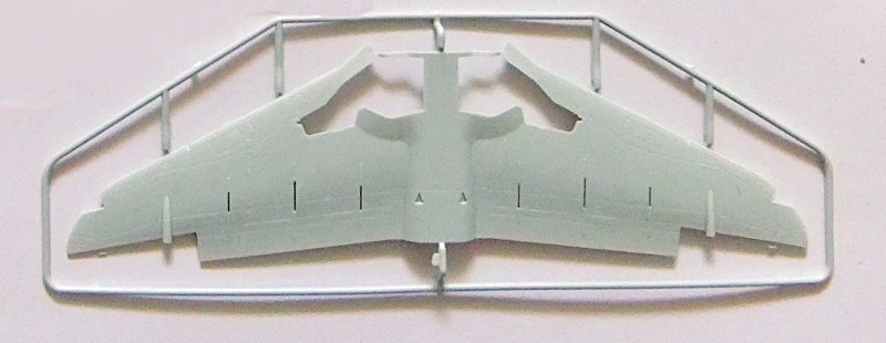 Die markanten Doppelschlitzlandeklappen der Hawk sind im Gegensatz zu den sonstigen Ruderflächen leider nur fest an den Flügeln angegossen. Wahrscheinlich wäre diese Option form- technisch zu aufwändig gewesen. Die hintere Luftbremse wiederum kann offen präsentiert werden. Ansonsten ist auch im Bereich der Gravuren nichts an den Modell auszusetzen.