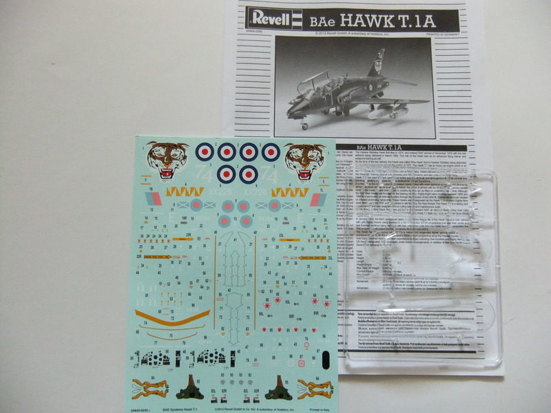 Bausatz: Diese Variante mit knallroten Einzelteilen brachte die Fa. Revell aus Bünde schon vor mehr als einen Jahr in den Handel. Nun hat Revell nachgelegt und die Hawk-Variante als Waffentrainer mit der Unterrumpfgondel für die Aden Kanone, anstelle des Rauchgenerators ausgeliefert. Neu sind außerdem noch die beiden Raketenbehälter. Diesmal sind die 170 Einzelteile in modellbauer-freundlichen Hellgrau abgespritzt.