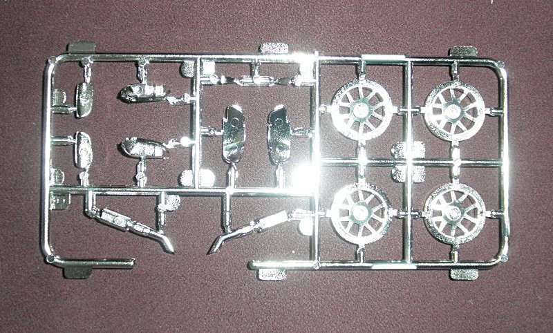 Die Felgen, der Auspuff und die Scheinwerferinnenteile sind als Chromteile beigelegt. Ein weiterer Spritzgußrahmen aus Klarsichtmaterial umfasst Scheiben, Scheinwerfergläser und Spiegelgläser. Die alles klar und durchsichtig gegossen und selbstverständlich separat verpackt. Die Reifen (Slicks) sind aus Gummi. Schön breit und gut ausgeformt.