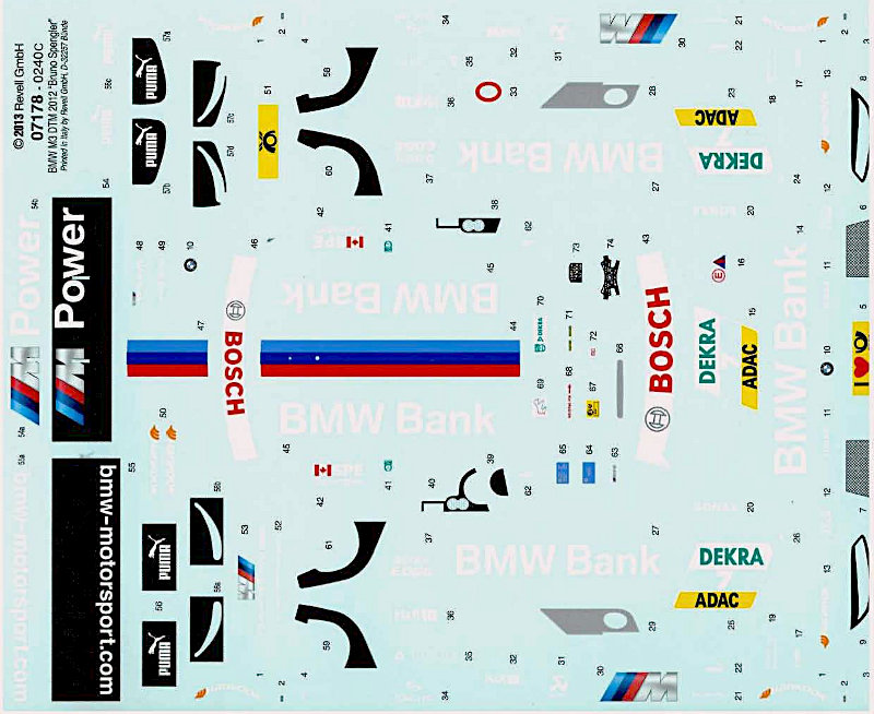 Der sauber gedruckte Abziehbilderbogen umfasst alle Aufkleber und Werbepartner, die der BMW dieser DTM Reihe drauf hatte.