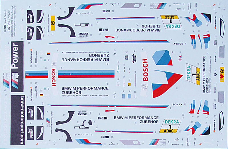 Ein sehr gut gelungener Decalbogen mit den passenden Werbebeschriftung für diesen DTM Flitzer sorgen für ein angemessenes Erscheinungsbild des Modells. Diesen sehr schönen Decalbogen zu verarbeiten, ist auch die größte Herausforderung bei diesem Bausatz.