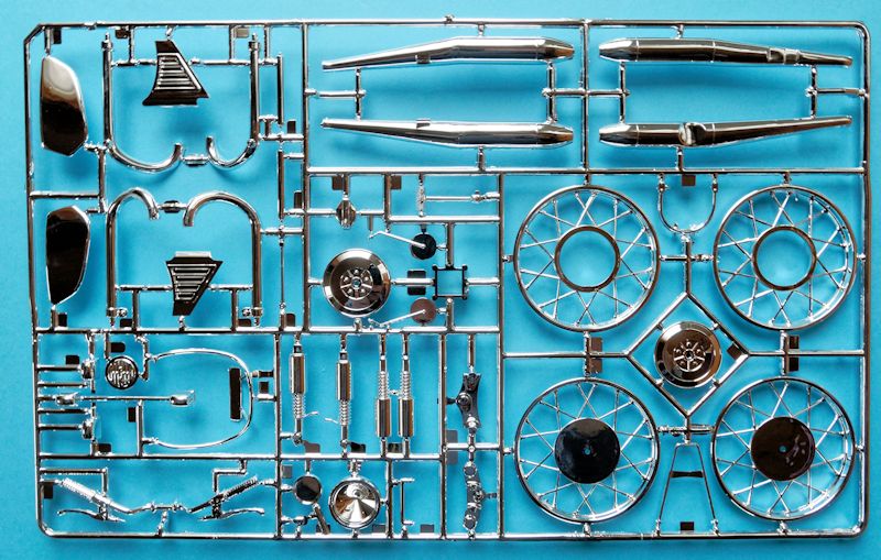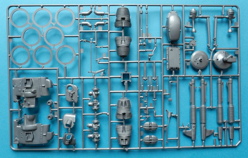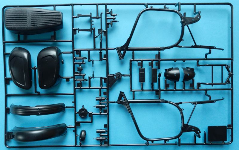 Bausatz: Der Bausatz besteht aus drei Spritzlingen die in Schwarz, Silbergrau und Chrom gegossen sind. Die Detaillierung der einzelnen Teile ist gut gelungen. Obwohl dieser Bausatz schon etliche Jahre auf dem Buckel hat, ist er immer noch auf der Höhe der Zeit. Schön gemacht ist die Gestaltung der Teile in verschiedenen Farben.