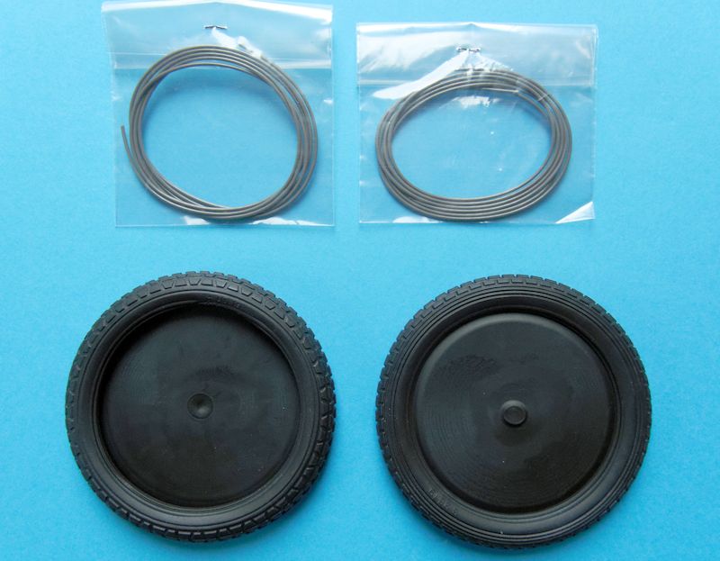 Die Räder und Leitungen sind aus Vinylgummi hergestellt. Die beiden Reifen besitzen sogar unterschiedliche Profile, die auch beim Original so vorhanden sind.