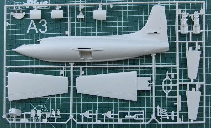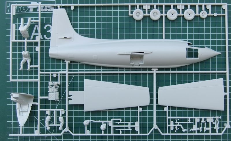 Bausatz: Der Bausatz von Revell ist eine Wiederauflage aus dem Jahr 1988. Unser Modell in 1:32 dürfte seinen Ursprung bei Monogram haben. Wenn auf dem Faltkarton das Wort New / neu in großen Buchstaben steht, so ist das nicht ganz korrekt. Ansonsten sind die 51 Einzelteile aus grauem Plastikmaterial, viel mehr braucht das Modell eigentlich auch nicht, es ist nun mal nur ein einfaches Raketenflugzeug, recht gut gestaltet. Die wenigen Gravuren sind zum Teil erhaben geprägt.