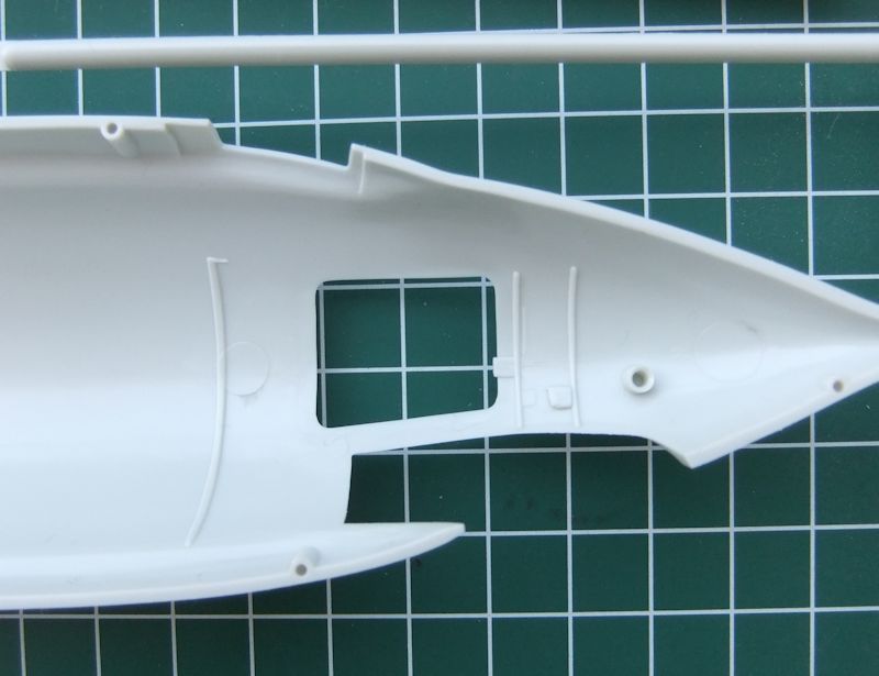 Seitlich unter dem Cockpit, befindet sich die große Einstiegsluke für den Piloten. Diese ist ein Extrateil und so bietet sich dort auf alle Fälle ein schöner Einblick in das Innere der Maschine. Die Klappe war im Original nicht beweglich.