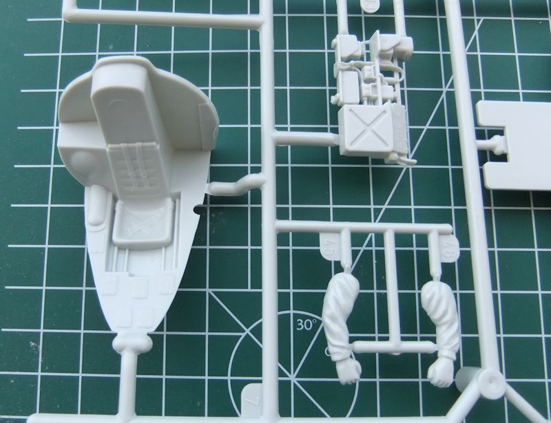 Das Cockpit aber ist recht umfangreich, dem Original entsprechend wiedergegeben. Das aufgeprägte Gurtzeug sollte in diesem Maßstab aber überarbeitet und ersetzt werden.