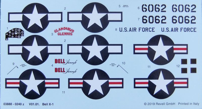 Vorbild: Der Testpilot Captain Charles ("Chuck") Yeager bestieg 1947 in dem Muroc-Trockensee/Kalifornien USA das von der Firma Bell Aircraft Co. entworfene Experimentalflugzeug Bell X-1. Ein umgebauter Boeing B-29 Bomber brachte sie auf eine Höhe von 12.800 Metern. Danach zündete Yeager den Raketenmotor der X-1 und durchbrach kurze Zeit später mit einer Geschwindigkeit von Mach 1,6, also etwa 1060 km/h zum ersten Mal in der Geschichte der Luftfahrt die Schallmauer. Das Triebwerk der Bell X-1 war ein Vierkammer Raketenmotor XLR-11. Von der Bell X-1 wurden insgesamt drei Maschinen gebaut. Später erhielt eine Maschine einen verlängerten Bug und eine Vollsichtkabine. Chuck Yeager Rekordflugzeug ist im National Air and Space Museum in Washington D.C. zu bewundern. Die Bugaufschrift, "Glamorous Glennis", bezieht sich auf seine Frau.
