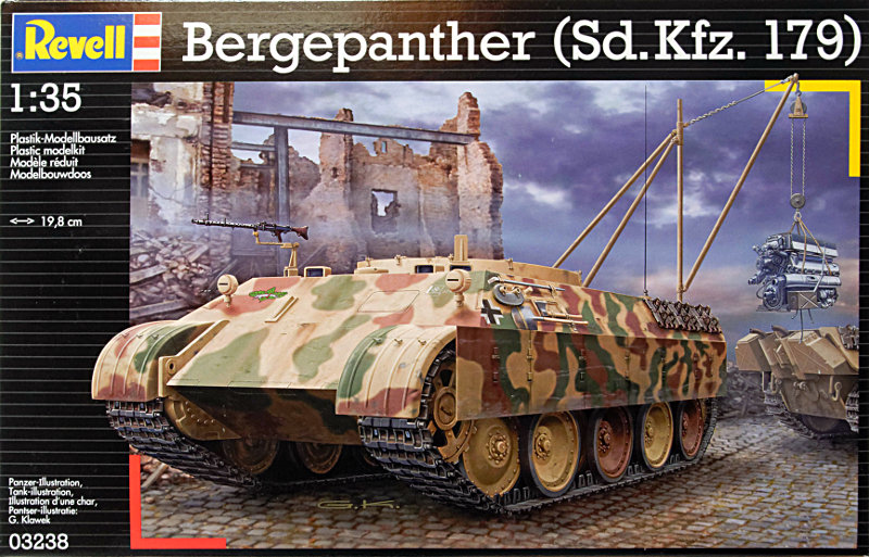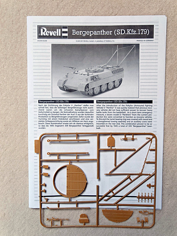 Unter der Artikelnummer 03238 hat Revell jetzt auch den Bergepanther herausgebracht. Dieser basiert auf der Ausführung D des PzKpfw. V. Der Bausatz ist original der Formensatz von ICM, was auf den Spritzlingen auch überall zu sehen ist.