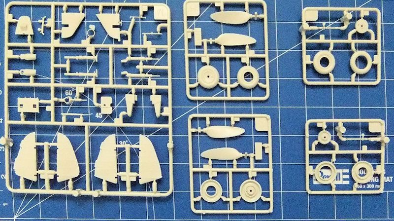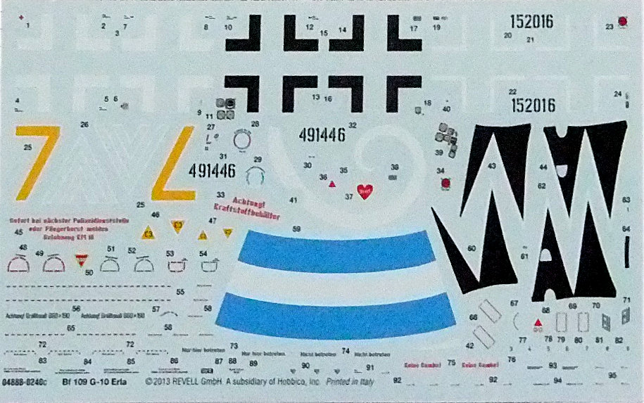 Bausatz: Nach dem Erscheinen der Bf 109G-6 war es nur eine Frage der Zeit, bis Revell eine G-10 Variante folgen lies. Da sie auf der G-6 aufbaut befinden sich unter den 147 Einzelteilen auch einige bekannte Komponenten aus diesem Bausatz. Dazu gehört das Cockpit, das Fahrwerksinnere und auch die äußeren Flächenteile. Komplett neu sind der Rumpf, die Flügelwurzeln, das Leitwerk und die Räder. Auch die korrekten Luftschrauben wurden berücksichtigt. Selbstverständlich können auch bei dieser Messerschmitt wieder alle relevanten Klappen und Ruder in verschiedenen Positionen gestaltet werden.