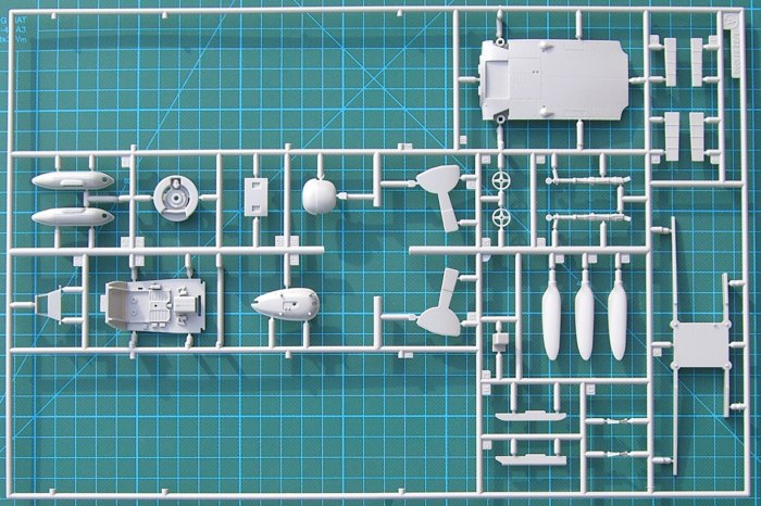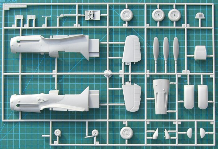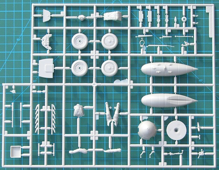 Bausatz: Dieses Modell ist ein Kooperationsprodukt mit Hasegawa. Dort erschien ja vor einiger Zeit eine neue späte Bf 109. Die K-4 gab es dort bisher noch nicht. Der modulare Aufbau des Bausatzes lässt die Kombination der verschiedensten Teile zu. Beim Tragflächenmittelstück hat man auch die korrekten Details umgesetzt. Selbst an die Indikatoren für die Fahrwerksanzeige hat Revell gedacht. In der Bauanleitung gibt es vernünftige Hinweise für deren Erstellung und Platzierung.