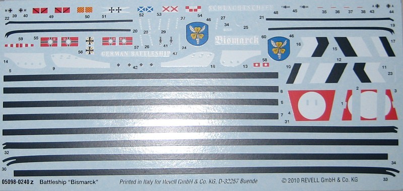 Die Abziehbilder sind von höchster Qualität und beinhalten sogar die Kennungen der Bordflugzeuge. Erfahrene Modellbauer werden sicher die Abziehbilder für den Wasserpass und die Verzerrungselemente nicht nutzen, aber man sollte bedenken, dass ein Großteil der gebauten Modelle niemals mit Farbe in Berührung kommen und so sind diese Elemente für den Gelegenheitsbauer durchaus hilfreich.
