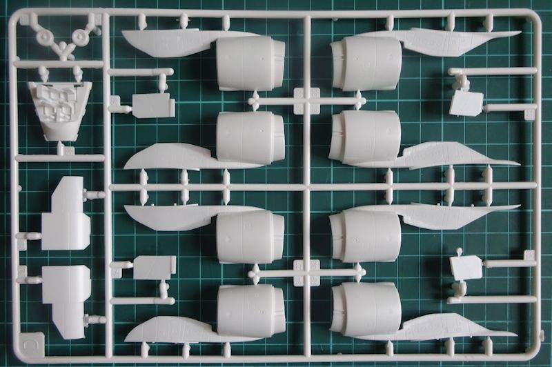 Die Teile sind sauber gespritzt, einzig an den feinen Fanblättern der Triebwerke ist etwas Grat vorhanden. Die Einordnung in die Kategorie Level 5 ist auf Grund der vielen Teile berechtigt.