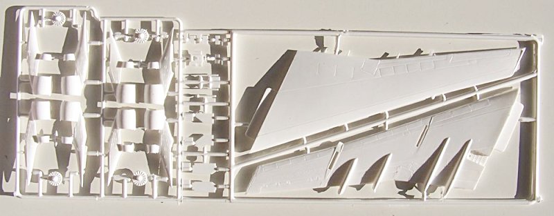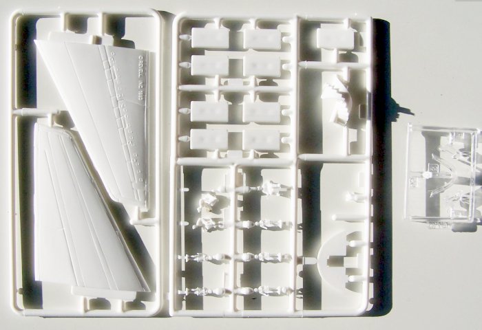 Das Modell selbst ist der übliche Spritzgussbausatz im Stil der 70ziger Jahre. Die Gravuren sind erhaben auf dem Rumpf und versenkt an den Tragflächen.