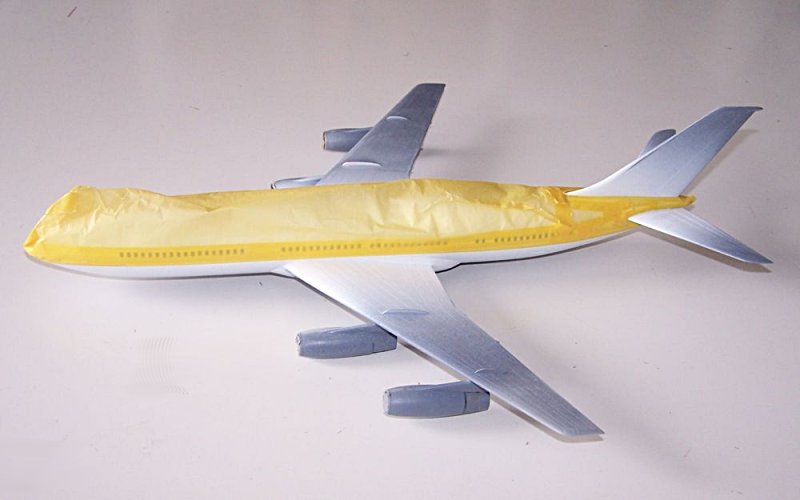 Zu wissen ist: Die Neuauflage hat als rechte Rumpfseite den einer B747-200, nicht der einer B747-100 wie im ursprünglichen Bausatz. Dieser wurde einst zugunsten der moderneren Originalvariante durch die entsprechend größere Anzahl von Fenstern im Oberdeck verändert. Den kleinen Buckel am Ende des großen Buckels vergaß man dereinst aber zu entfernen, sei hier erbsenzählerisch angemerkt.