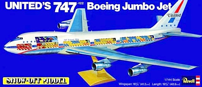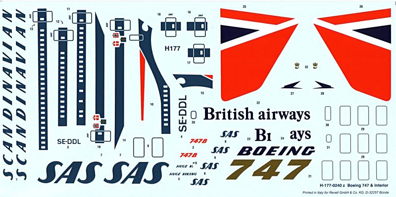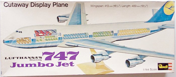 1974 entschied man sich ein "Cutaway" Modell zu machen, bei dem man durch Öffnungen in einer Rumpfseite die Inneneinrichtung sieht. Basis war das Modell der B747-100. Es erschienen im Laufe der Jahre mehrere Versionen durch unterschiedliche Fluggesellschaften auf den Märkten der Welt. Mit dabei: SAS und BA (wie hier), Lufthansa, United Airlines und meines Wissens nach auch TWA. (Übrigens erschien auch eine Lockheed L1011 Tristar von Revell als so genanntes "Show-Off"- Modell, welche ich auch noch stets am jagen bin ! Sachdienliche Hinweise nehme ich gerne entgegen)