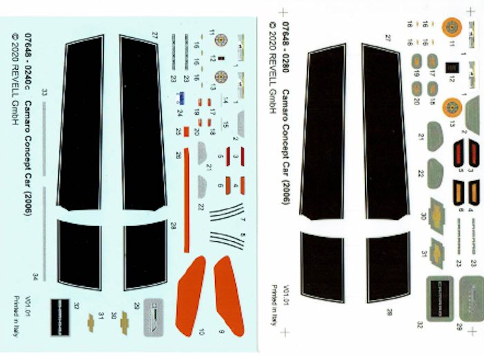 Bausatz: Der Camaro Concept Car ist ein alter Bekannter aus dem Hause Revell - USA der 2011 erstmalig als Snap-Tite Bausatz unter der Bausatznummer 85-1944 vertrieben wurde.