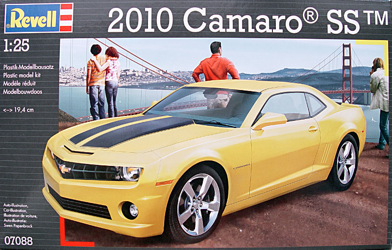 Revell hat mit dem Camaro SS seine Modellpalette moderner Supersportwagen ergänzt. Das Modell präsentiert sich in einer revelltypischen Faltschachtel. Das Deckbild ist schön gestaltet. Die Bauanleitung ebenfalls. Die liegt in Form eines schwarz/weiss Druckes mit 16 Seiten Umfang bei und ist in 44 Schritte untergliedert. So bleibt jeder Abschnitt übersichtlich, man kann keine Bauteile vergessen oder übersehen.