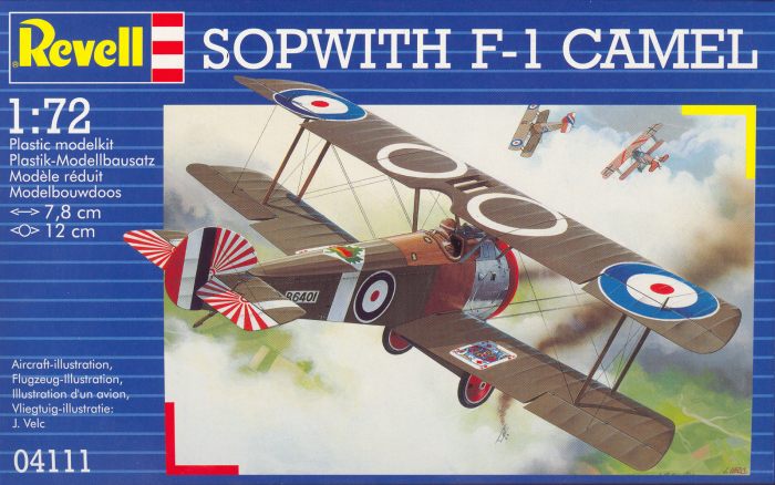 Vorbild: Die Sopwith F.1 Camel entstand Ende 1916 als Nachfolger der Pup. Im Januar 1917 folg die Camel zum ersten Mal. Ab Mai begannen die Lieferungen an die Marie und dem Royal Flying Corps. Im Juli 1917 hatte die Camel ihre ersten Einsätze bei der Schlacht um Ypern. Insgesamt sind 5490 Exemplare von der Camel gebaut worden. Sie erwies sich als ein wendiges und leistungsfähiges Flugzeug der Alliierten, das allerdings auch tückische Flugeigenschaften hatte. Im WK I wurde die Camel nicht nur von den Streitkräften des britischen Empires geflogen, sondern auch von den Amerikanischen Expeditionsstreitkräften eingesetzt. Nach dem Krieg erfolgte ein weiterer Einsatz im russischen Bürgerkrieg. Die Luftstreitkräfte Polens setzten die Camel bei Eroberungsfeldzug gegen Sowjetrussland 1920 ein. Der Nachfolger der Camel wurde die Sopwith Snipe, die diese ab Ende 1918 ablösen sollte.