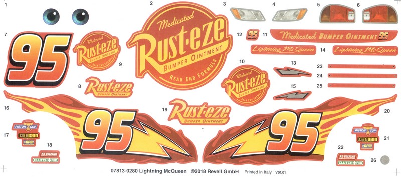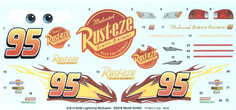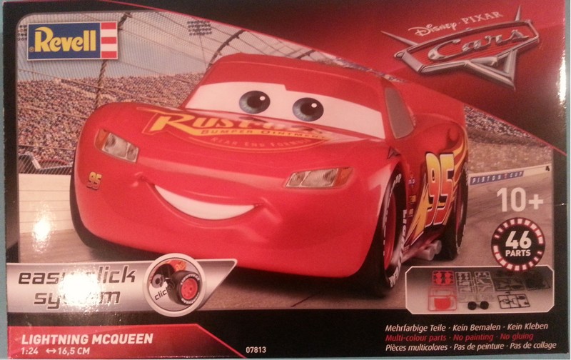 Vorbild: Von einem Vorbild im eigentlichen Sinne kann man hier natürlich nicht sprechen. Aber jeder, der Kinder hat, dürfte trotzdem schon das rote Rennauto kennen. Der Animationsfilm Cars und die folgenden Filme Cars 2 und 3 von Disney Pixar sind schließlich ein großer Erfolg. Dazu gesellt sich dann wie heute üblich, eine große Flut an Merchandising. Auch Revell ist in diesem Thema aktiv.