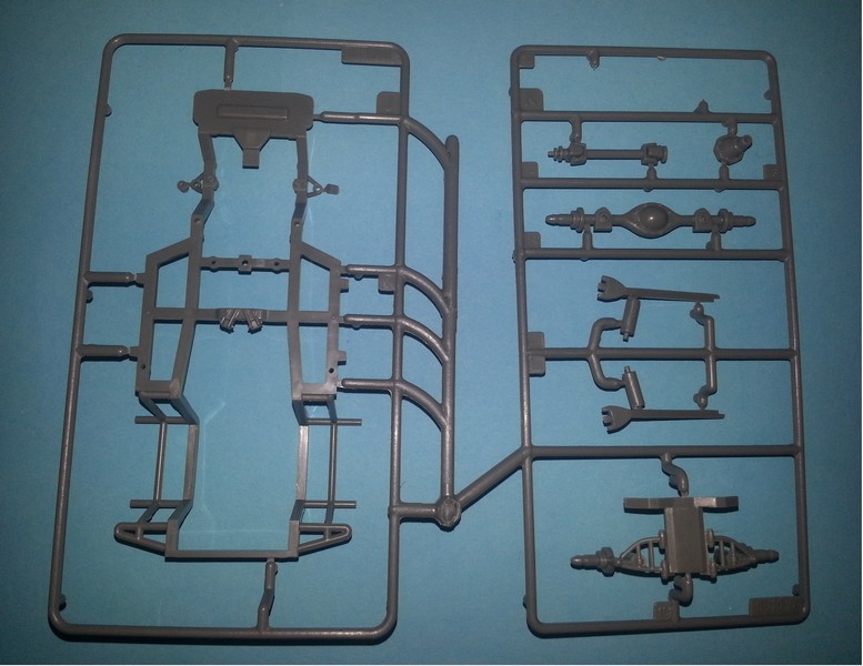 In Anlehnung an die Kits der "Erwachsenen" verfügt auch dieser hier schon über ein richtiges Innenleben mit Motor, Rahmen und Aufhängung. Eine separate Motorhaube ermöglicht auch noch später den Blick auf den klassischen V8-Motor mit zentralem Luftfilter. Einen Innenraum gibt es nicht, was aber dem Vorbild mit Charakter aus den Filmen entspricht. Die Abspritzung ist gut und man hat sicherlich bei der Auslegung eine gewisse Robustheit mit einkalkuliert.