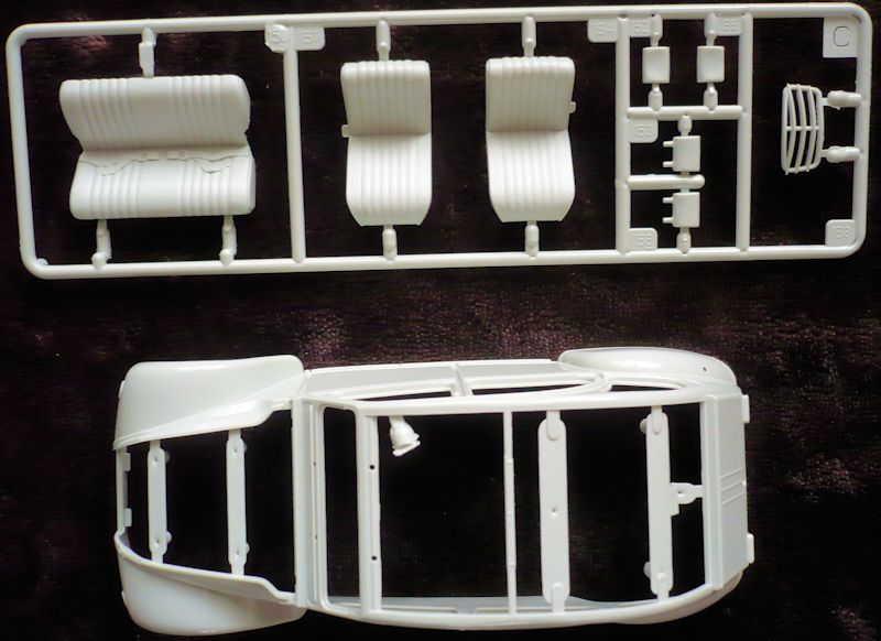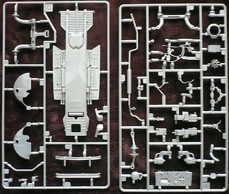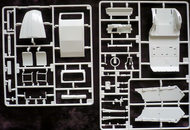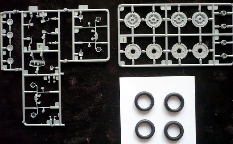 Der sonst unveränderte Bausatz besteht aus 139 Bauteilen, verteilt auf 8 Spritzlinge, der Karosserie als Einzelteil, einem Abziehbilderbogen, Gittermaterial als Kühlergrilleinsatz und natürlich der Bauanleitung.