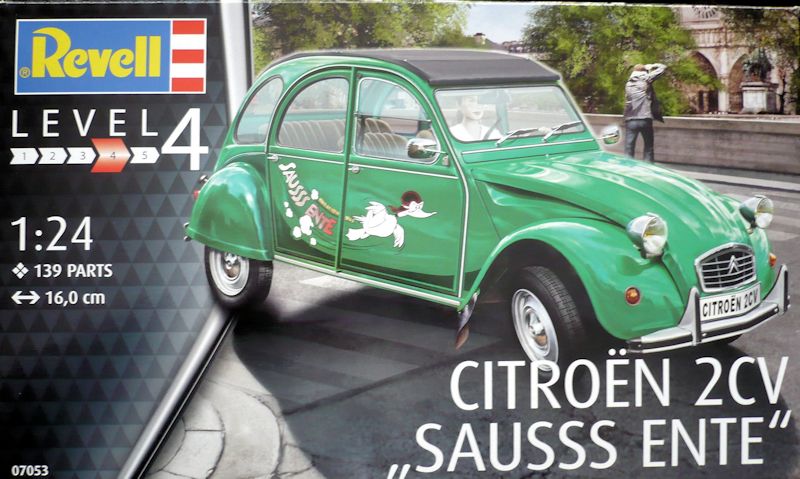 Bausatz: Gleich beim Öffnen fällt auf, dass wir die Plastikspritzlinge eines Bekannten in der Hand halten - der Charleston Ente aus dem Jahre 2011. Ergänzt wurden die Spritzlinge durch 2 Materialansätze mit den veränderten Scheinwerfern in Schlafaugenoptik, Zusatznebelscheinwerfer und der dazu passenden Verglasung.