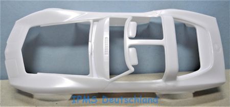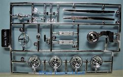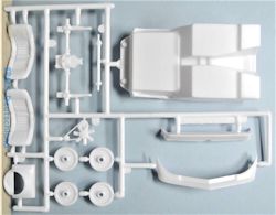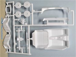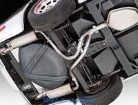 Geliefert wird der neue Bausatz in der Revell bekannten Side-Open-Box mit einer wie immer sehr guten Autoillustration. An vier Gussästen befinden sich ca.70 Bauteile die in Weiß, Klar und Chrom abgespritzt sind. Dazu kommen vier Gummireifen und die bekannten sehr guten Decals.