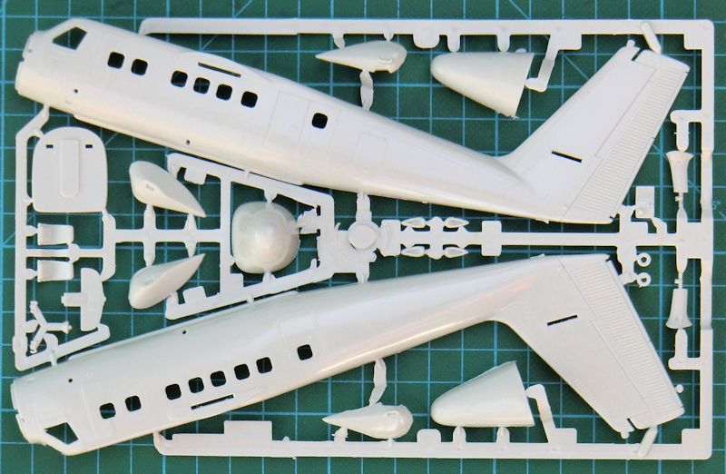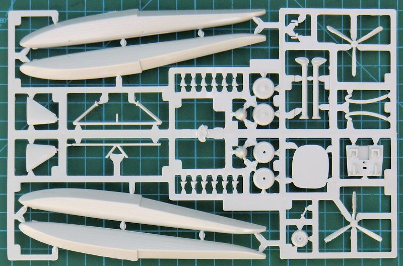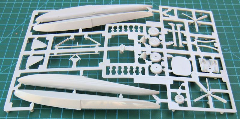 Die Bauteile sind von Matchbox bekannt und passen für einen Einsteigerbausatz noch in die heutige Modellbauwelt. Ich finde die Oberfläche gelungen. Das gilt insbesondere für die des Seitenruders. Das Cockpit ist etwas spartanisch. In der Transportkabine gibt es jedoch gar nichts! Die kleinen Fenster werden von innen eingeklebt und sind nicht besonders durchsichtig.