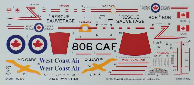 Der kleine Decalbogen ist tadellos auf hellblauem Trägerpapier gedruckt. Die Farbtöne müssen teilweise aus dem Revell-Sortiment gemixt werden.
