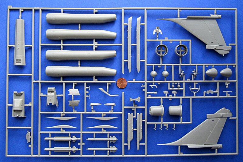 Bausatz: Der Bausatz von Revell ist ein alter Bekannter, auch wenn er schon seit längerer Zeit nur gebraucht zu bekommen war. Das Werkzeug wurde 1999 in Korea designed un ist von sehr guter Qualität. Für die letzte Auflage der Rafale B wurde es aktualisiert und zum Beispiel um die Fackel- bzw. Düppelwerfer im Heck ergänzt. Die Startschienen an den Flügelenden müssen aber noch immer etwas überarbeitet werden, um dem Produktionsstandard zu entsprechen. Wolfpack bietet einen kleinen Satz (48032, 48034 oder nur das Notwendige 48055) mit Detailupdates an. Weiterhin gibt es einen Flaps-Satz. Auch die Lufteinläufe enden noch immer einfach im Rumpf. DMold hat hier einen Satz im Programm, der allerdings den Bausatzpreis verdoppelt.