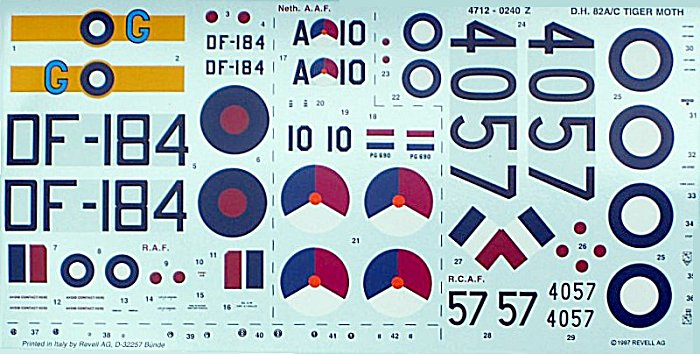 Vorbild: Die Tiger Moth war eines der am häufigsten eingesetzte Schulflugzeug der 30er Jahre. Sie hatte im August 1931 ihren Erstflug. Gedacht war sie damals für die Primär-, Kunst- und Blindflugausbildung. Im zweiten Weltkrieg wurde die DH-82 auch von der RAF eingesetzt. Es erfolgte eine Lizenzproduktion in Kanada. Dort erhielten sie teilweise Schwimmer und Schneekufen sowie zum Teil eine richtige Cockpitverglasung. Die Tiger Moth wurde auch nach Australien, Neuseeland, Portugal, Uruguay, Iran und Irak exportiert. Nach dem WK II wanderten die verbliebenen Maschinen in private Hände.