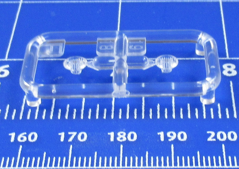 Der Motorblock ist sehr komplex geformt und wird durch diverse Anbauteile ergänzt. Die beiden Hälften werden einfach zusammengesteckt. Dann wird der Block weiter komplettiert. Für die beiden Frontscheinwerfer gibt es zwei Klarsichtteile.