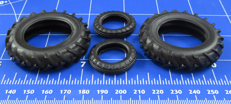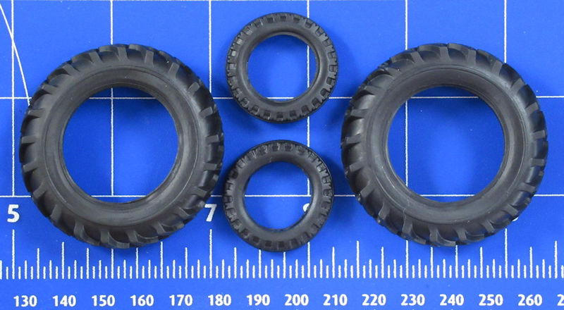 Die vier Gummireifen haben ein wunderschönes stimmiges Profil. Allerdings vermisse ich die Größenbezeichnungen an der Seite. Ich mag ja gar nicht auf den fehlenden Herstellerbezeichnungen herumreiten…