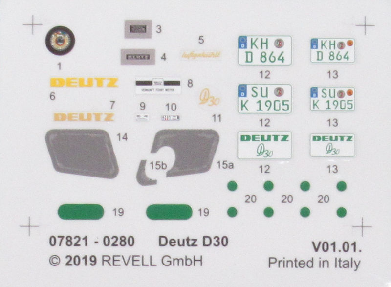 Fazit: Ein gut gemachter Bausatz des Deutz D30 im Maßstab 1/24. Er ist auch für Anfänger geeignet. Revell sollte hier auf dem Gebiet weitermachen!!!