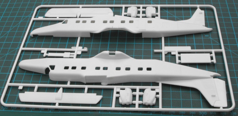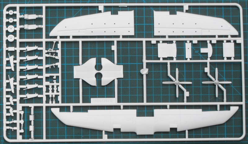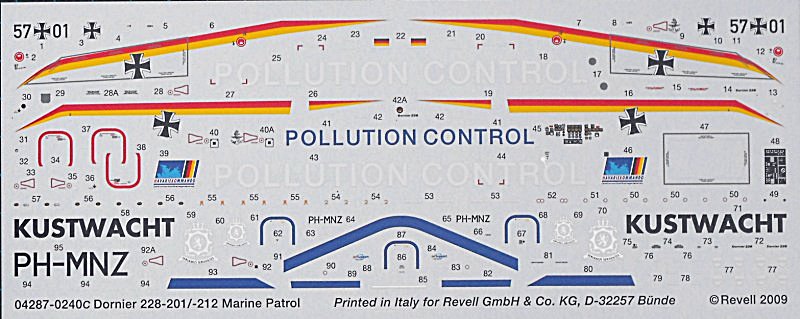 Der Bausatz enthält die bekannten weißen Spritzlinge, einen Rahmen Klarsichteile, eine gute Bauanleitung und den Decalbogen. Das Cockpit ist recht einfach detailliert. Wer kann und will, der kann sich hier bisschen schaffen. Um es vorwegzunehmen: Viel ist nach dem Einkleben der dicken Verglasung nicht mehr davon zu sehen. Revell gibt 10g Gegengewicht an. Ich würde es nicht ohne riskieren, denn vor dem Cockpit ist genug Platz und hier gilt mehr ist besser. Ein paar Streben für den Klappenmechanismus der Tragfläche müssen selbst aus Gießästen gezogen werden. Man kann auch im Fachhandel erhältliche Profile von "evergreen" nutzen. Der restliche Zusammenbau dürfte problemlos von statten gehen bis man feststellt, dass die Maschine gar keine Ausrüstung für die Ölmissionen hat. Hier fehlt der lange runde Behälter unterm Vorderrumpf. Bei der holländischen Version kann ich den Behälter nur erahnen.